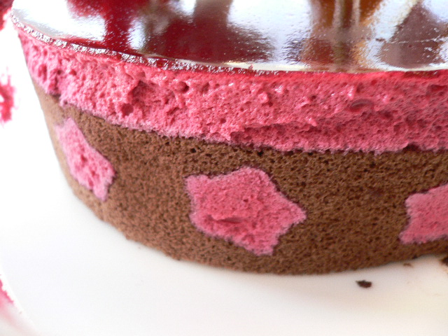 ビスキュイの内側と上にはカシスのムースを流して