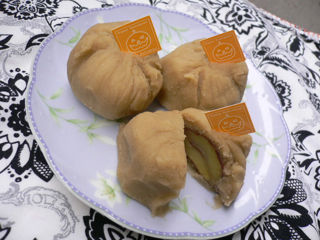 自分でつくった栗のペーストを巻いて焼いたパンです。