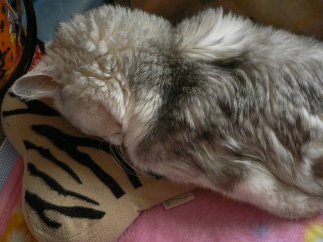 そうそう昨日の昼間、うちのれでこがこんなかっこで寝てました。